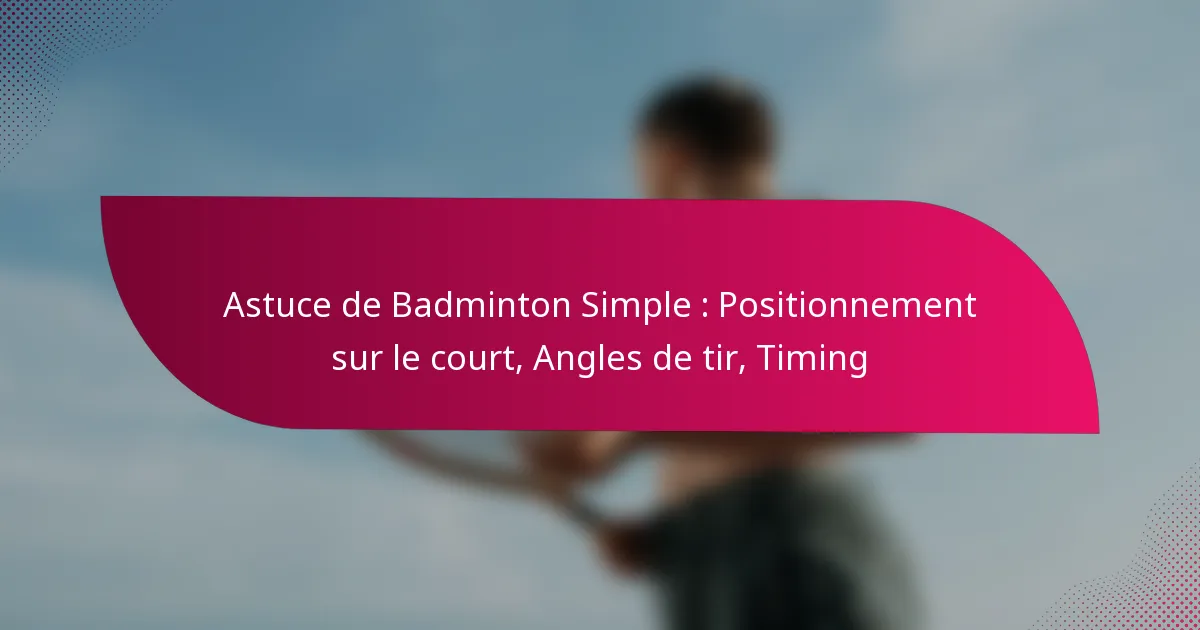 Améliorer les compétences au badminton implique de maîtriser le positionnement sur le court, les angles de tir et le timing. Ces éléments sont cruciaux pour un jeu efficace et peuvent influencer considérablement les résultats des matchs.